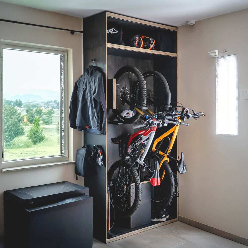 Intelligente Aufbewahrung und Ladung an einem Ort – platzsparend und stilvoll für E-Bike-Besitzer.